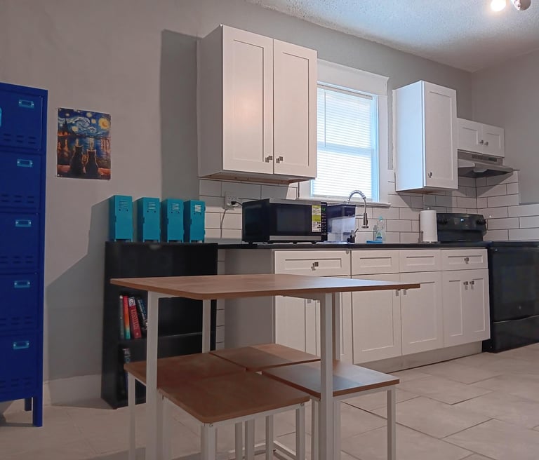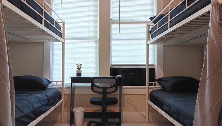 Discover affordable and comfortable lodging in the heart of Ybor City, featuring 16 individual beds and 2 private rooms for a unique hostel experience where you do self check-in any time and self check-out before noon. We will send the door codes to your cell phone or email address. When you reserve a bed, you will share the bedroom with other travelers. The two bathrooms and kitchen are shared by all guests. Because this is a shared living space, we do not allow pets.